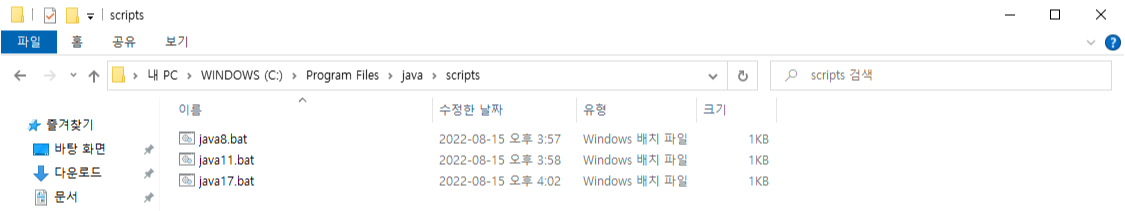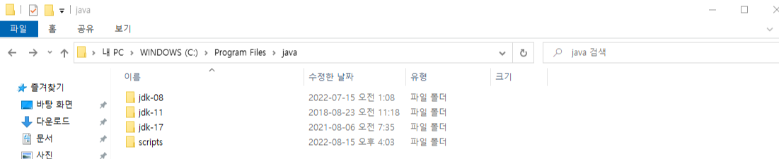 3.3 2λ²μμ λ§λ java ν΄λμ Scripts ν΄λλ₯Ό λ§λ€κ³ κ²½λ‘λ₯Ό 3.2μ²λΌ μμ€ν λ³μ path λ³μμ μμ±νκ³ νμΈμ λλ₯Έλ€.