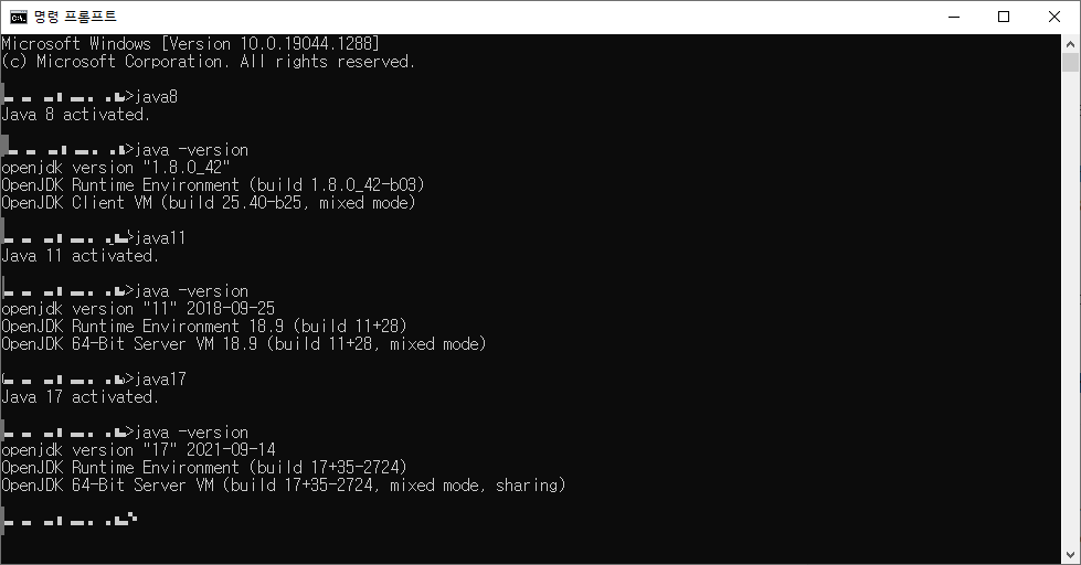 5. CMD μ°½μ μ΄μ΄ μλ°κ° λ³κ²½λλμ§ νμΈνλ€.