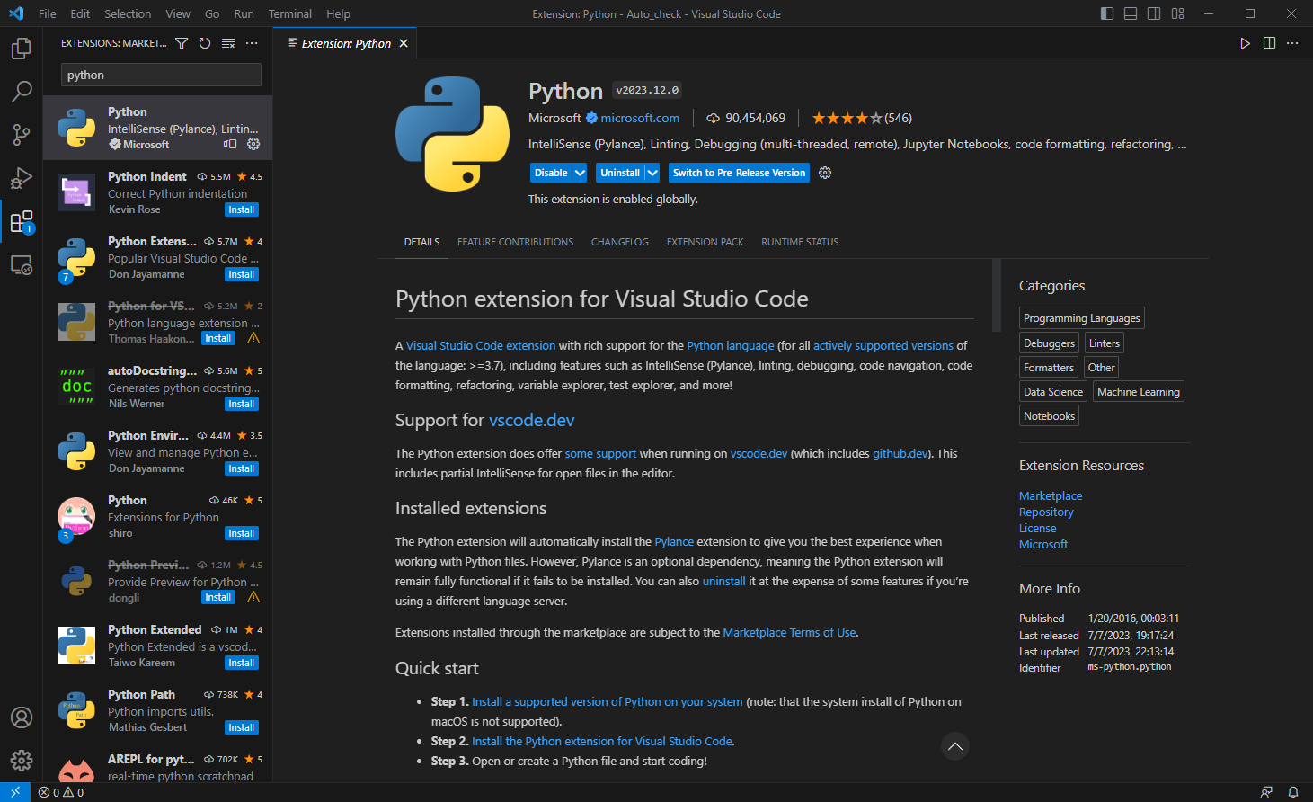 1. vscode ํ์ฅํ๋ก๊ทธ๋จ(Extensions)์์ Python๊ณผ Code Runner๋ฅผ ์ค์น